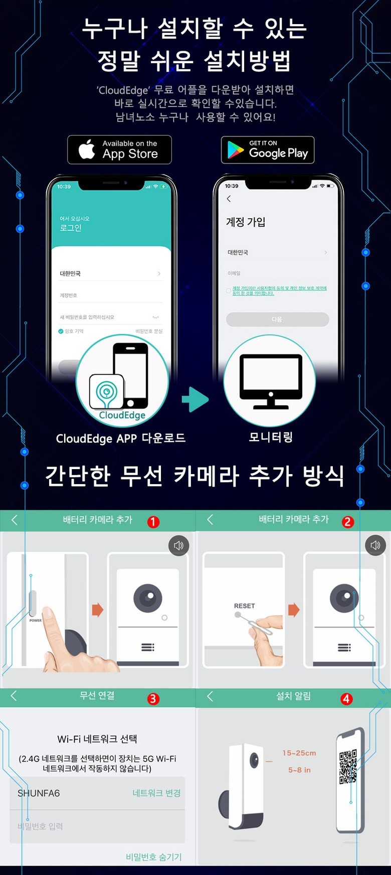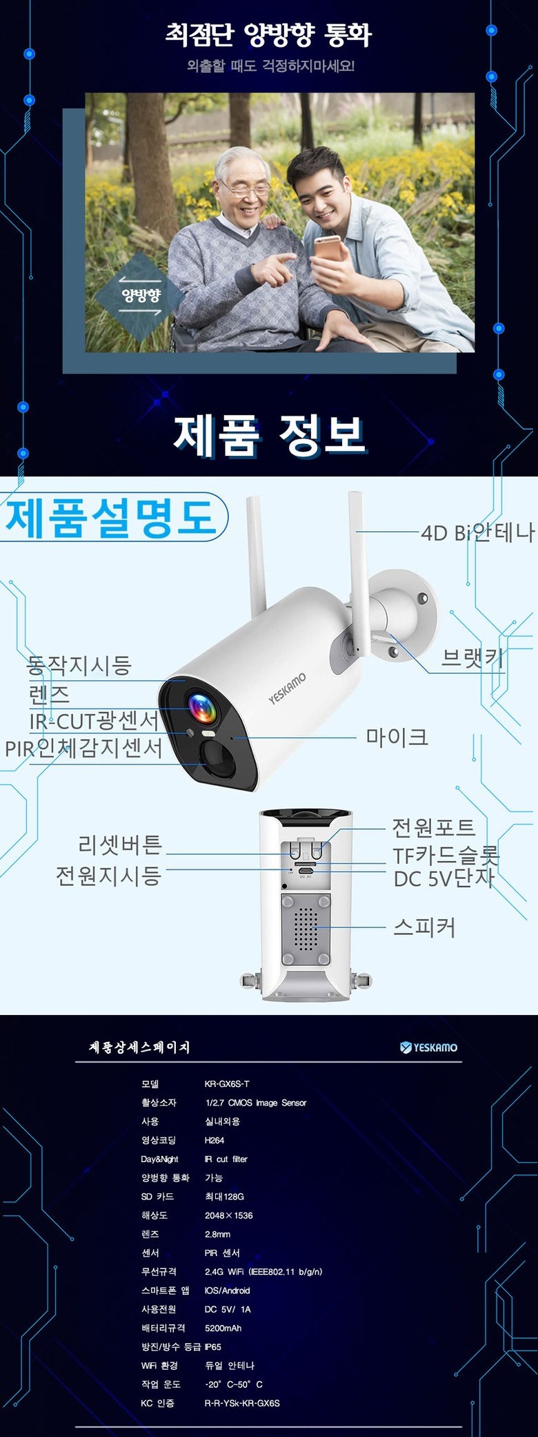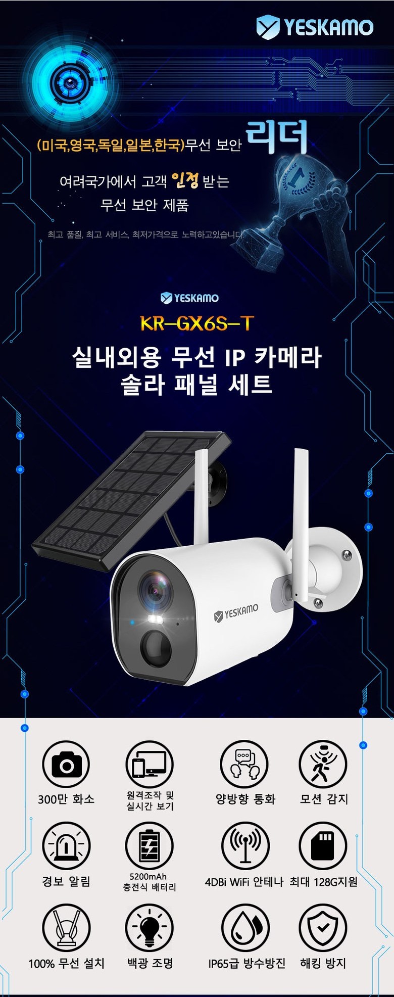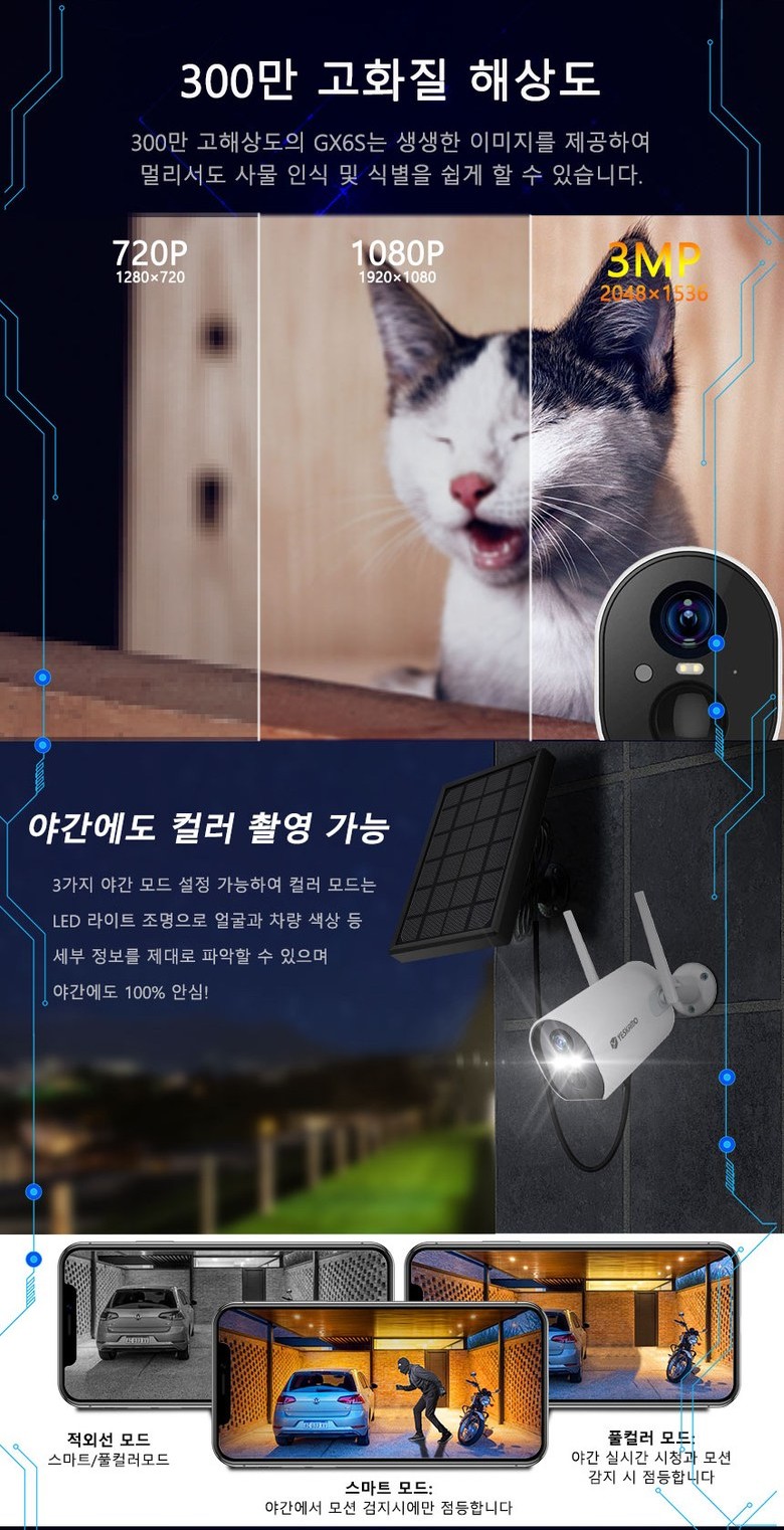 실내외용 무선 IP 카메라 솔라 패널 세트